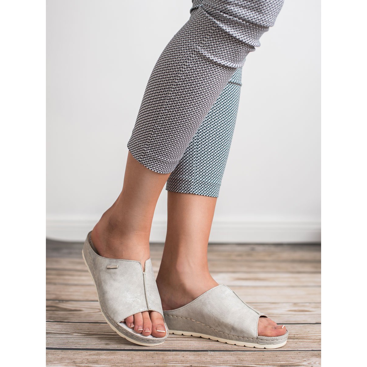 Model má otevřenou patu a je nazouvací, což usnadňuje nazouvání a vyzouvání. Plastová podrážka s běhounem navíc poskytuje dostatečnou přilnavost a díky jejich elegantní, ale ležérní úpravě vypadají skvěle na každé noze.
