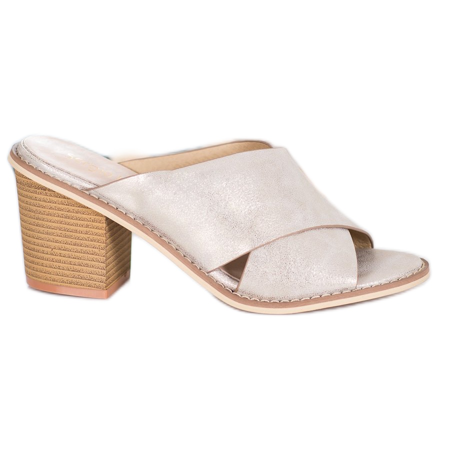 Představujeme elegantní zlaté klouzačky na vysokém podpatku Sergio Leone - perfektní volba pro ženy, které chtějí spojit pohodlí s třídou! Tyto stylové žabky jsou vyrobeny z vysoce kvalitního materiálu podobného kůži, díky čemuž vypadají skvěle v jakémkoli letním stylu.