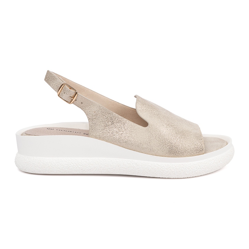 Sandály byly vyrobeny z vysoce kvalitní ekologické kůže, díky které je šetrná k životnímu prostředí a zároveň vizuálně atraktivní. Interiér polstrovaný přírodní kůží poskytuje tomuto modelu pohodlí, takže si je můžete užít celý den. Hladká plastová podešev nabízí vynikající adhezi a stabilitu, což z nich činí ideální volbu pro procházky po městě nebo letních setkáních s přáteli.