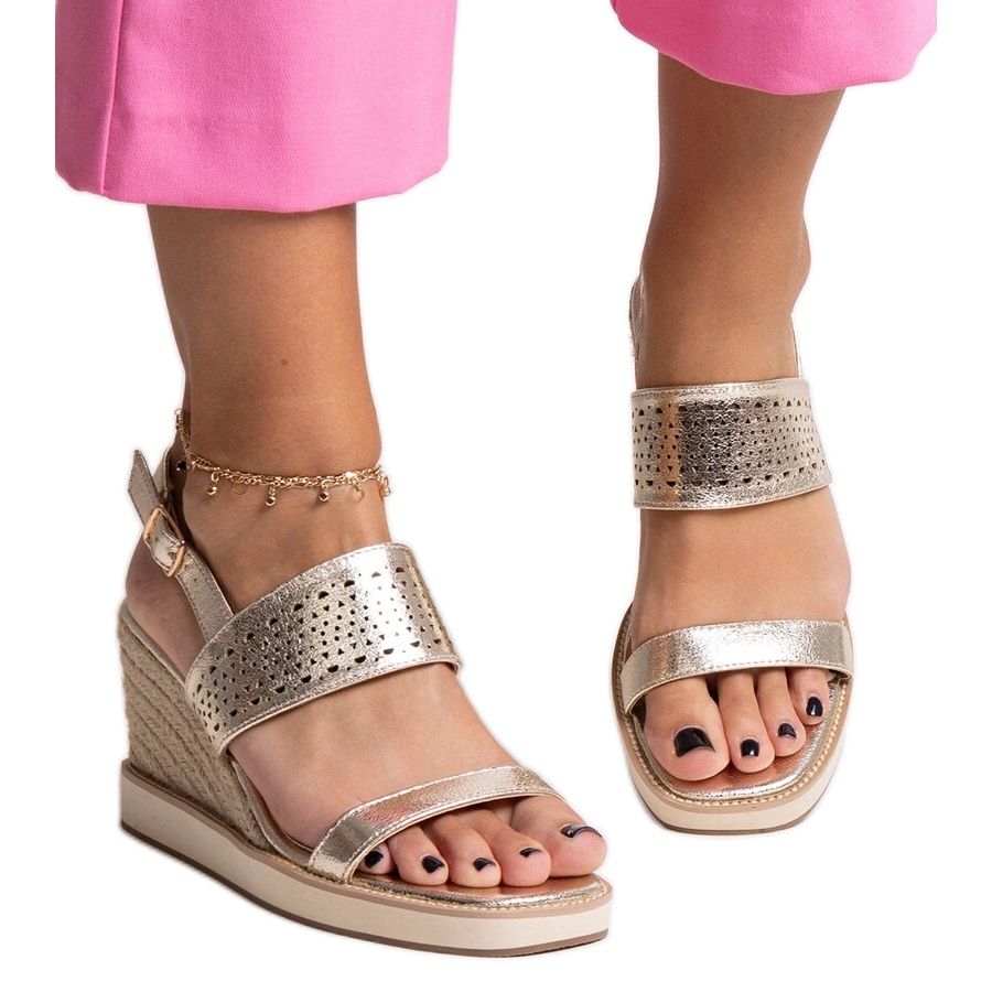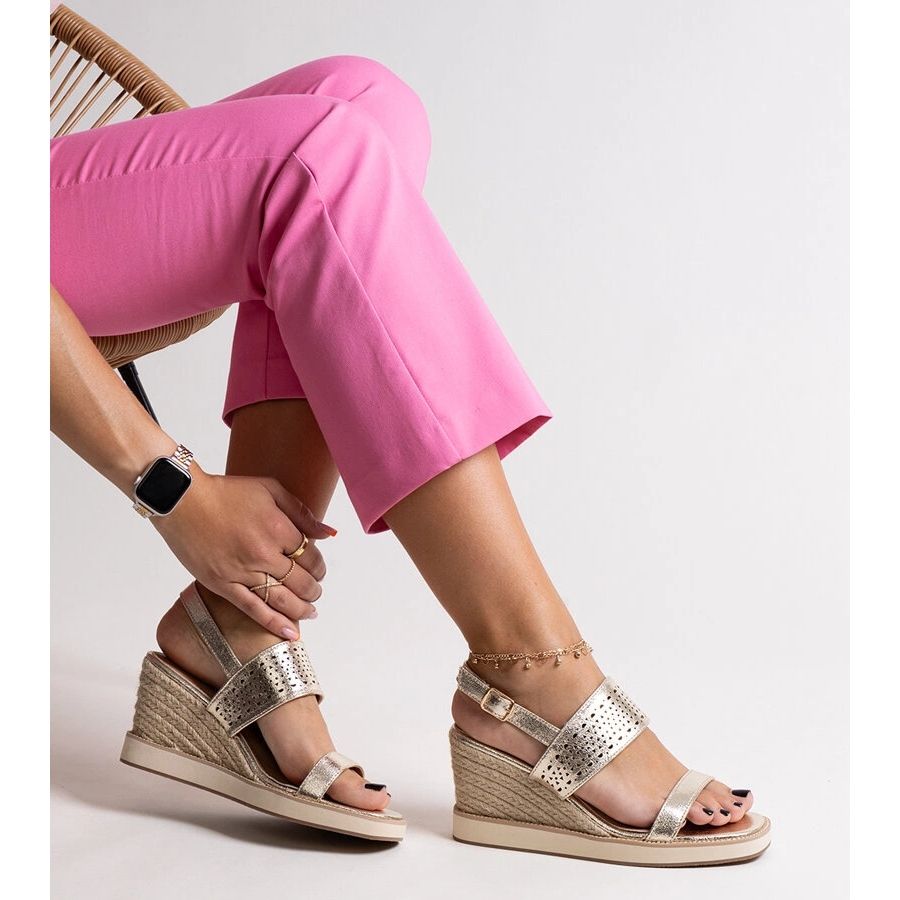 - Modelka: 7210 Zlaté espadrilkové sandály na klínku