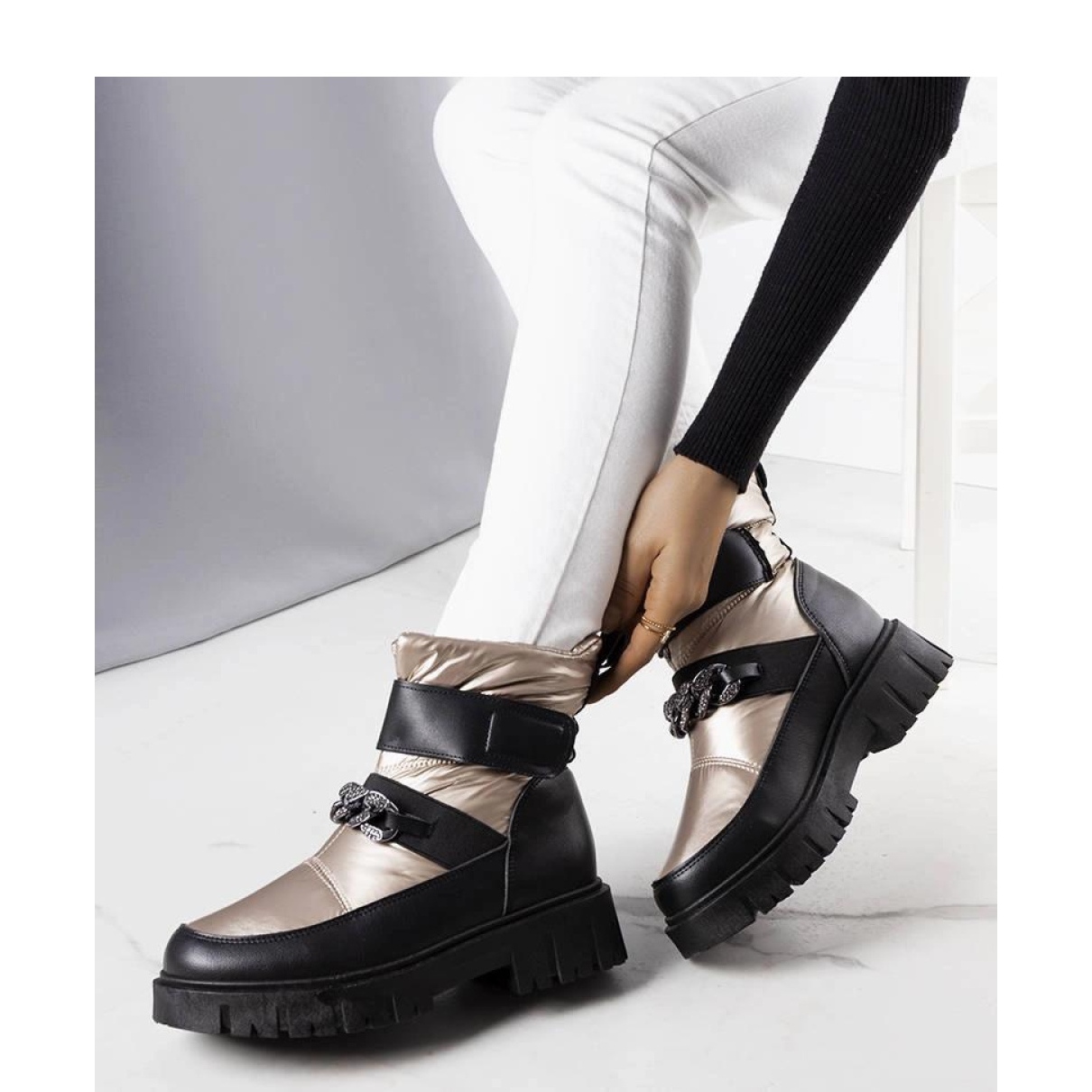 Zlaté sněhové boty s řetězcem Efraim od značky Sole je perfektní kombinací stylu a funkčnosti, která bude fungovat během zimních výletů. Jejich horní část, vyrobená z vysoce kvalitní ekologické kůže a vodotěsného materiálu, poskytuje nejen elegantní vzhled, ale také ochranu před nepříznivým povětrnostním podmínkou.