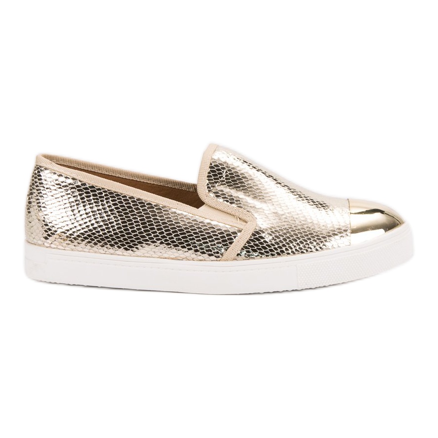 Tenisky Gold Slip On od značky Queen Bee jsou perfektní volbou pro ženy, které chtějí vyniknout v každodenním stylingu. Pro jejich jedinečný lesk a jedinečný zvířecí motiv je těžké je ignorovat. Vyrobeny z vysoce kvalitní ekologické kůže, spojují eleganci s komfortem nošení.