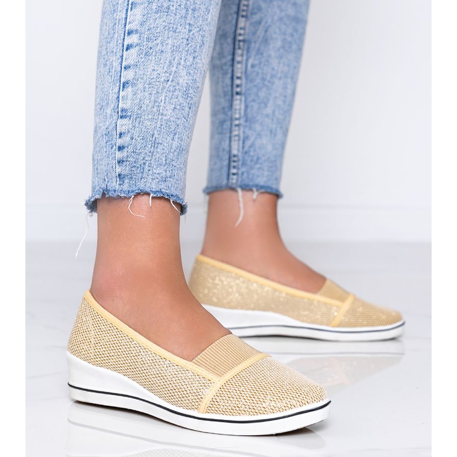 Inna marka Zlaté třpytivé baleríny na klínu Glam Star zlatý