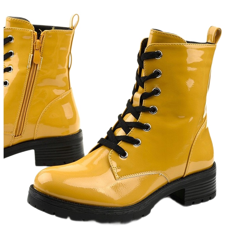 Nečekejte a přidejte do své sbírky tyto jedinečné žluté lakované bovver kozačky, které jistě podtrhnou váš individuální styl!